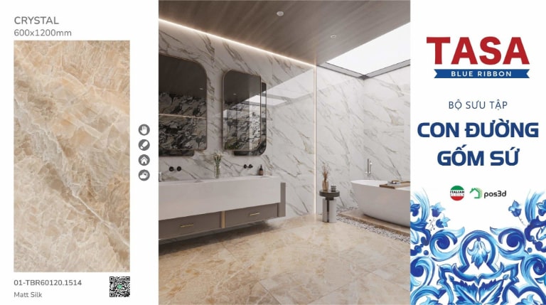 Gạch 120x240cm và 160x320cm đang trở thành tiêu chuẩn mới cho không gian cao cấp. Ít mối nối giúp tạo bề mặt liền mạch, hiện đại và dễ vệ sinh. Công nghệ sản xuất mới cho phép độ dày chỉ 6mm nhưng vẫn đảm bảo độ bền cao.