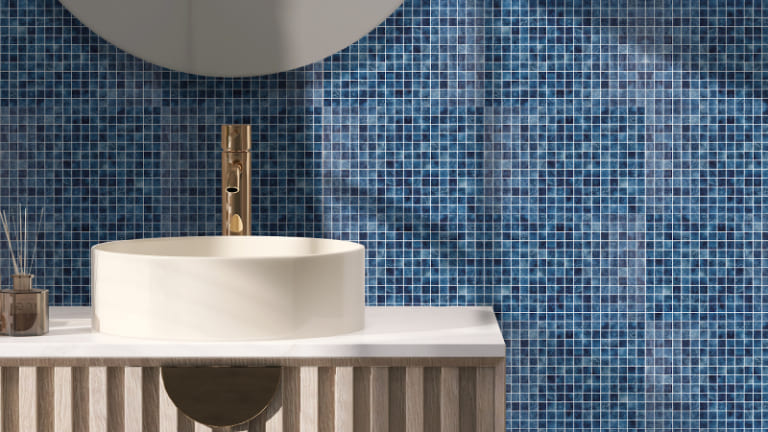 Gạch mosaic linh hoạt hơn trong thiết kế nhờ kích thước nhỏ, dễ uốn cong và tạo họa tiết phức tạp.