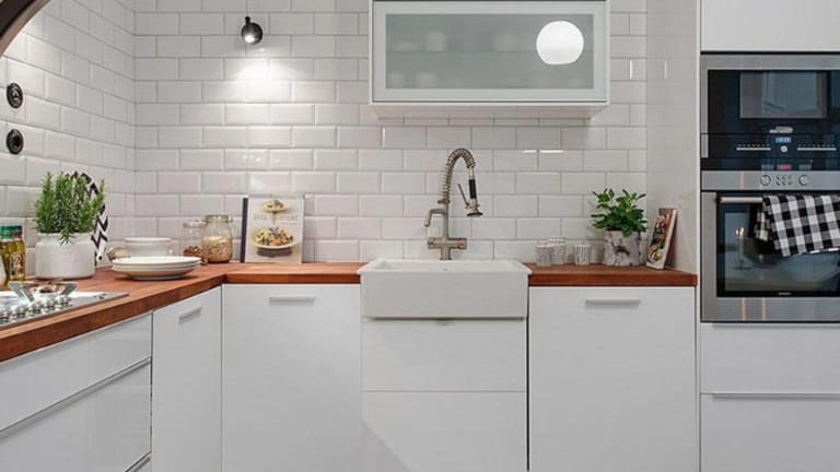 Ứng dụng làm backsplash bếp, gạch thẻ có khả năng chống dầu mỡ tuyệt vời và dễ lau chùi. Vùng nấu nướng sử dụng gạch thẻ chịu nhiệt cao bảo vệ tường khỏi hơi nước và mùi thực phẩm.