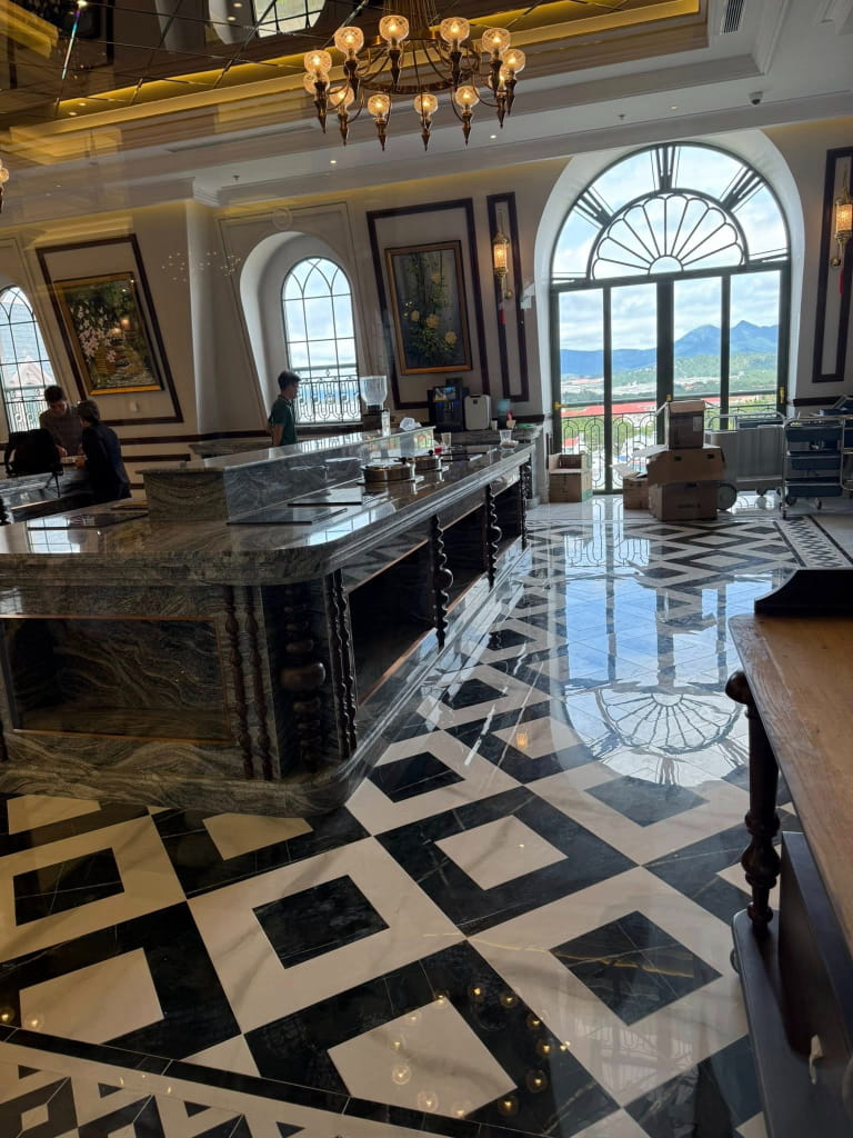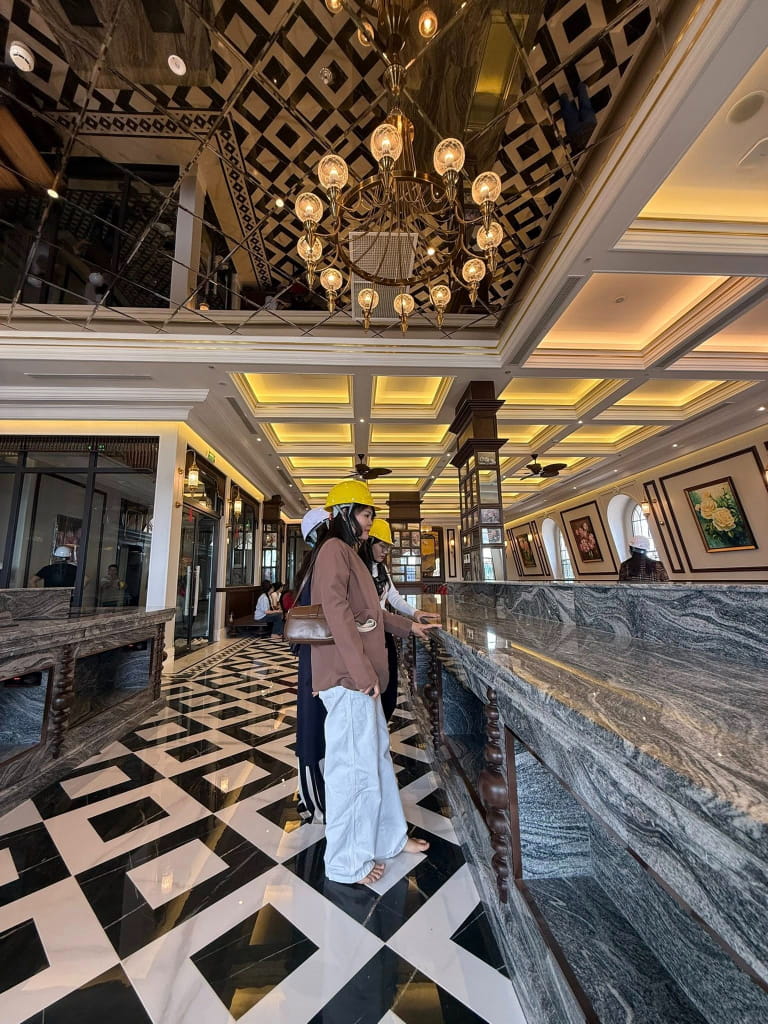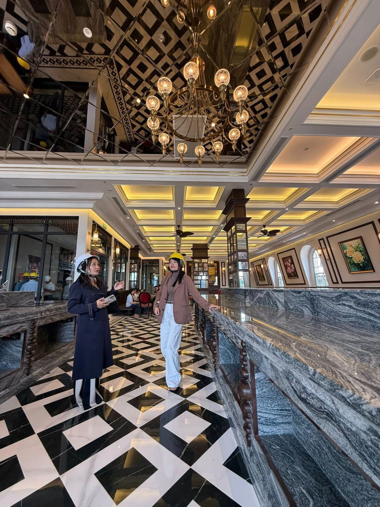 Chúng tôi đã cùng đội ngũ kiến trúc sư và chủ đầu tư thảo luận kỹ lưỡng để tìm ra giải pháp vật liệu tối ưu nhất. Mục tiêu là tạo ra một không gian mà ở đó, khách hàng có thể cảm nhận được sự ấm áp khi bước chân vào giữa không khí se lạnh của Đà Lạt, đồng thời vẫn giữ được vẻ bề thế, lộng lẫy của một khách sạn hàng đầu.