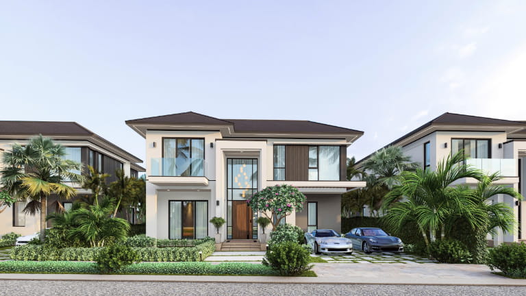 Nằm trọn trong không gian xanh mướt của sân golf chuẩn quốc tế, các căn villa liền kề tại Royal Long An không chỉ đơn thuần là nơi để ở, mà là nơi để tận hưởng cuộc sống. Với tầm nhìn triệu đô hướng ra những thảm cỏ xanh mướt và hồ nước yên ả, mỗi căn villa đòi hỏi một ngôn ngữ thiết kế nội - ngoại thất vừa phải kiêu sa, vừa phải gần gũi với hơi thở của thiên nhiên.