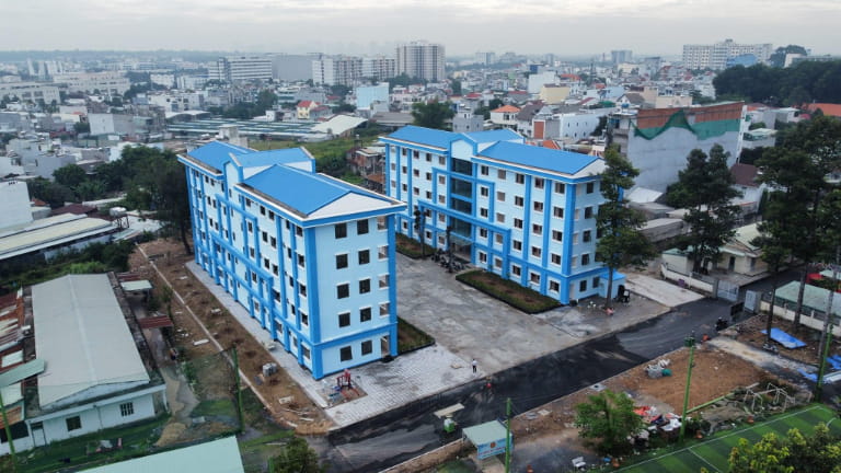 Đối với các khối nhà ở của học viên, giải pháp gạch của Kim Dung thiên về sự ấm áp. Những mẫu gạch mang hơi thở của gỗ hoặc đá tự nhiên giúp các học viên xa nhà cảm thấy thoải mái, tái tạo năng lượng sau những giờ học căng thẳng.